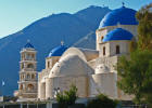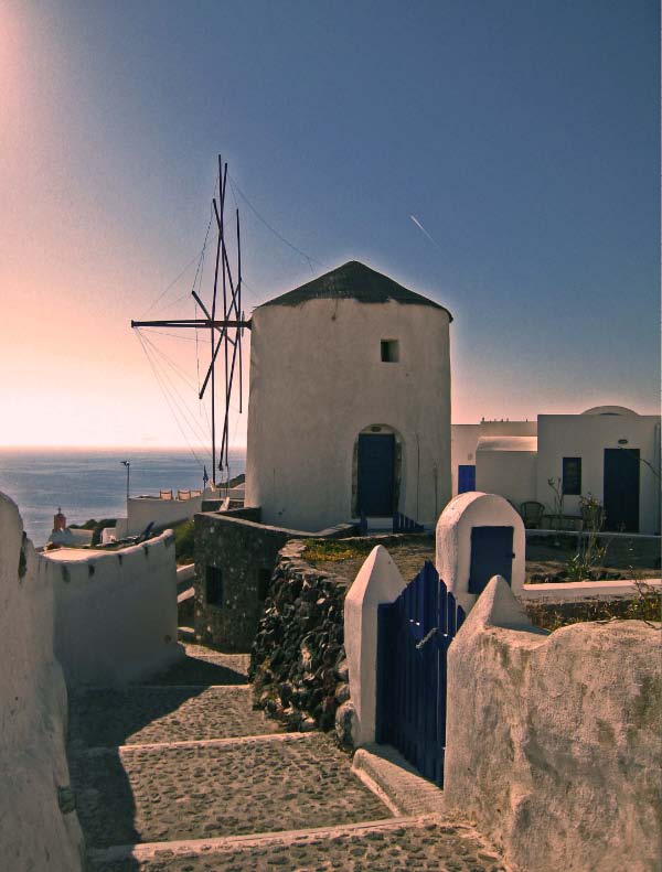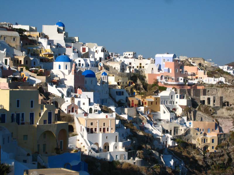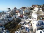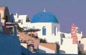 Oia Still recovering from the 1956 earthquake, Oia is dramatic, striking and quieter. Built on the steep slope of the caldera, many of its exquisite villas and dwellings, with their whiter than white walls, nestle in niches hewn into the volcanic rock. |