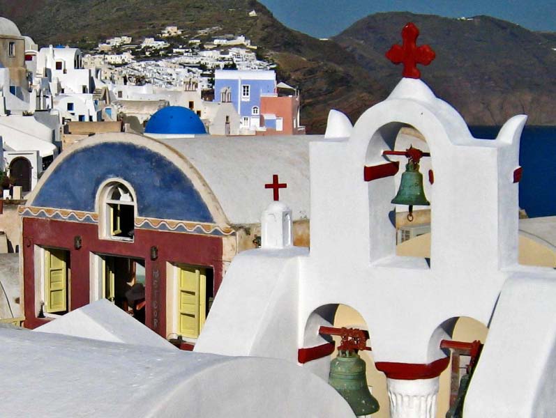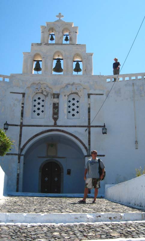 May/12 The ferry boat to Santorini (officially known as Thira) was a wise move because the anchorage is too deep and unprotected in the caldron and the marina is too shallow for us to enter. And it was such a nice break to get off the boat and stay in a pension on a real bed, with a real shower! |