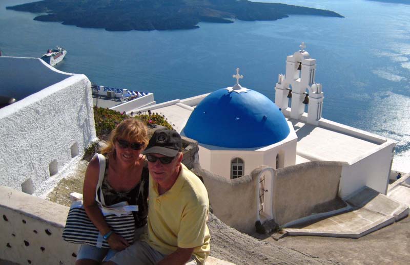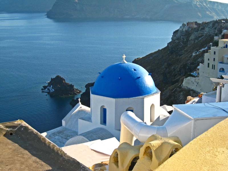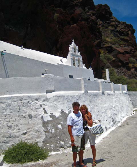 May 13 We drove all over Santorini. taking in the strikingly beautiful sights, many blue domes and whitewashed villas on top of the volcano that has become the icon of Greek postcards. |