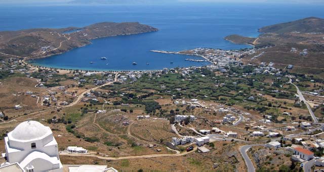 Finally, it was time to untie the dock lines. We went to pay the Harbor Master at Naxos for our time at the dock, his only request was "Pay what you think it was worth"!! I have to say, sailing in Greece is heaven! Light winds made our trip from Naxos to Serifos one of a sporadic bit of slow sailing, then motoring and finally, just as we were coming into the Port of Livadi, the wind teased us with another burst that allowed us to once again roll out the foresail for a few pleasant moments. We anchored in the quiet bay in front of the stunning scribble of white houses crowding a high rocky peak. For the most part the area around Serifos is barren and rocky with pockets of greenery, typical of many of the Cyclades islands. Serifos is rich in iron and copper mines, giving the rocks a distinctive color. We joined Argos that evening for drinks. |