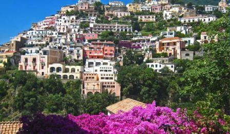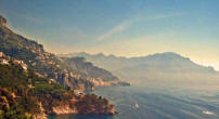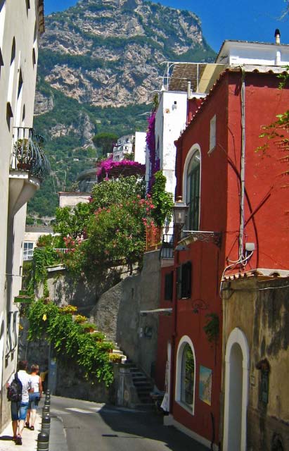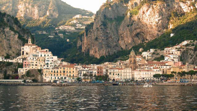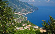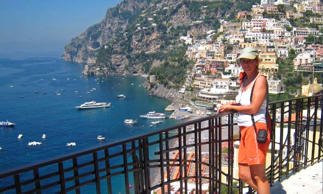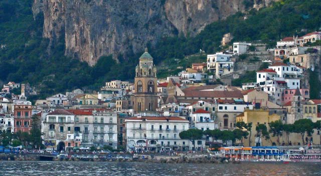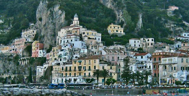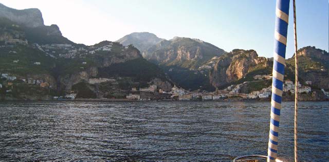 MAINLAND ITALY Amalfi June 16 After 2 nights at sea, we arrived on mainland Italy on the Amalfi coast, absolutely stunningly beautiful as the setting sun washed the stacked houses with a fiery golden glow. The town stands in a deep valley on a coastline of jagged cliffs and hilltop watch towers. |