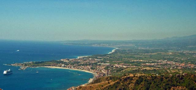 Where Greece had cats everywhere, Italy had dogs. You had to be very careful where you stepped to avoid the doggy "landmines." Many vantage points offered a special view of the surrounding hillsides of citrus trees and olive groves, Sicilian farmland and the great blue ocean. |