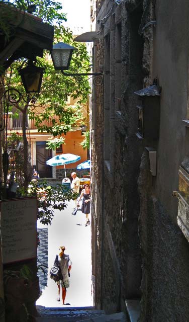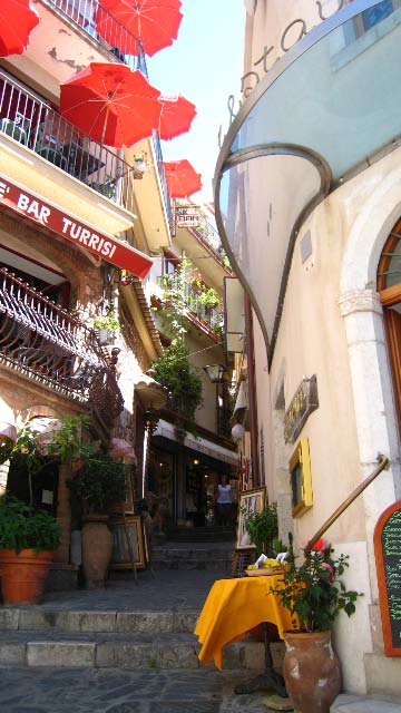 The old town of Taormina was enchanting, with long standing stone tenements, ornate iron railings around balconies, passageways, charming shops and restaurants in twisted cobblestone streets. |