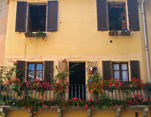 Some of the homes were painted in soft hues of ochre, salmon and sienna colors. Many had wonderful courtyard gardens or balconies overflowing with bougainvillea and other flowers. |