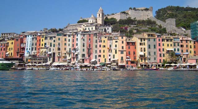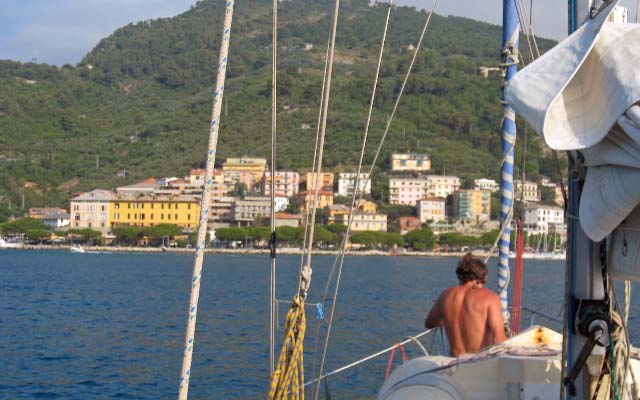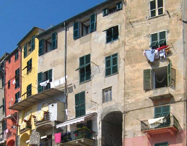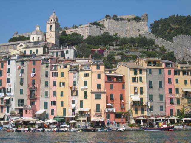We rejoiced that there was free water on the dock so we filled our tanks. We spent the next week catching up on boat chores and replaced the float valve in the bilge pump. With the free wireless internet connection, we got weather info and caught up on emails. Each morning we were awoken by the Church bells from numerous locations on shore bellowing in asynchronous chiming, making for a confusing tune. We decided to take the opportunity for some land travel while in La Grazie so planned our first excursion to Cinque Terra. |