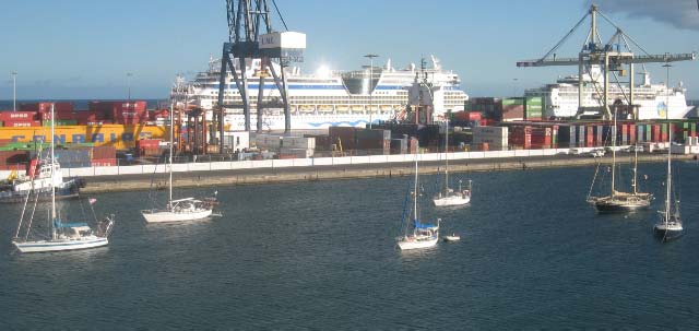 the working dock, where the cruise liners make their berthing so