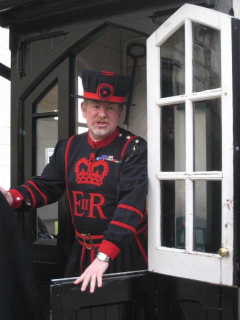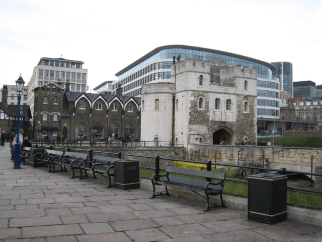 Tower of London From the bridge, the Tower of London was visible on the Riverbank. Founded by William the Conqueror in 1066 and enlarged and modified by successive sovereigns, in its time it has been a royal palace, a fortress, a prison, an armoury, a treasury and an astronomical observatory. At Dead Man's Hole beneath the bridge, we were reminded of the fact that the Tower was once an object of fear in its 900 year history for those who committed treason or threatened the throne. The site where we stood was once used to retrieve the many corpses that were thrown into the river from the Tower. |