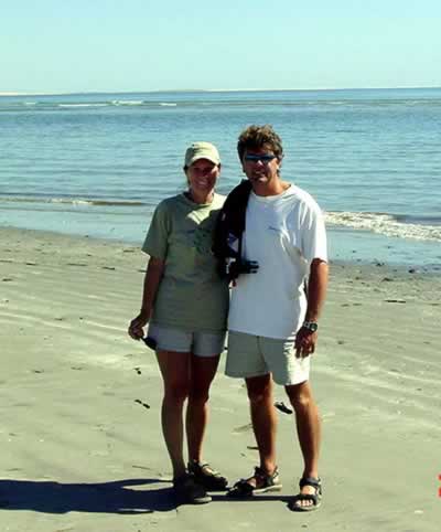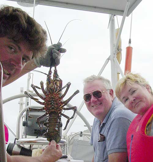 | Returning back to the boat through the surf proved to be more of a challenge as Dale and Gary were launched over a breaking wave reminiscent of the "Splash Mountain" ride in Disneyland! | |