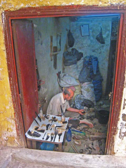 craftsmen carving pipes and haircombs from bone and