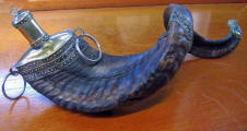 with silver and a cap, once used to carry gunpowder. A conversation