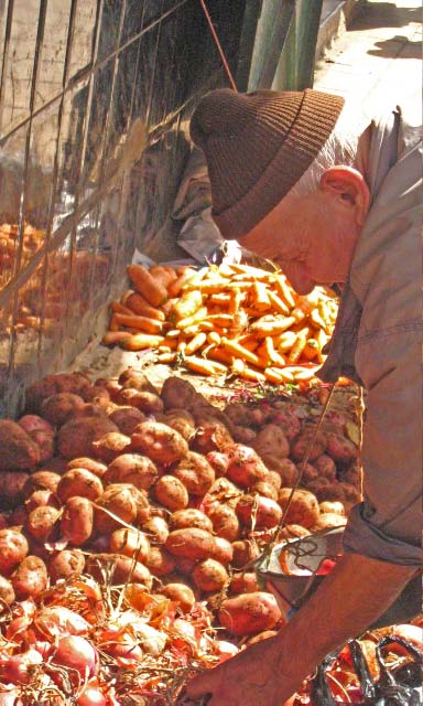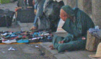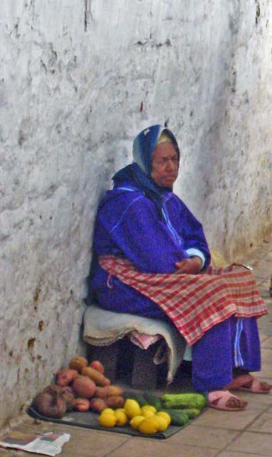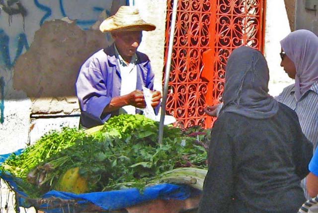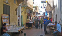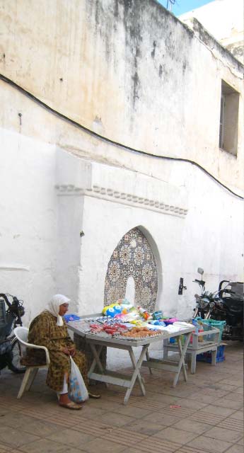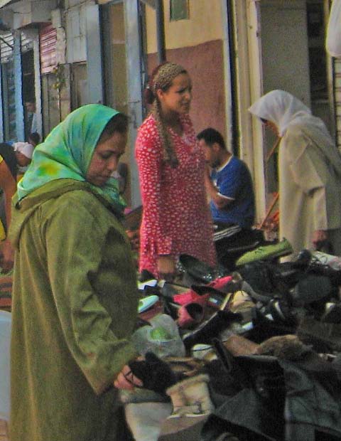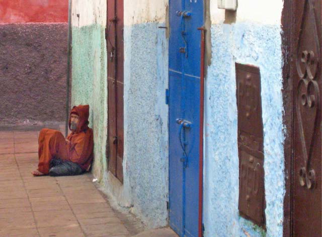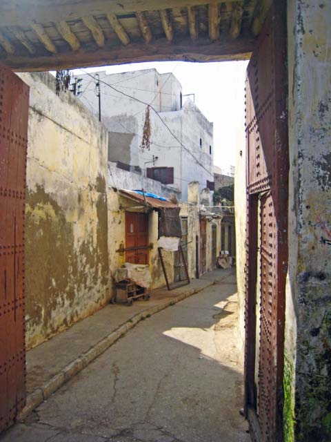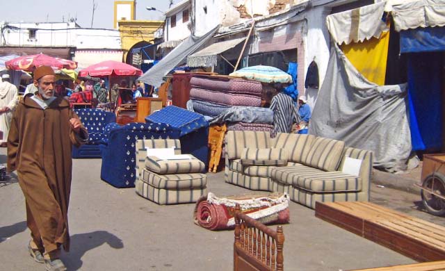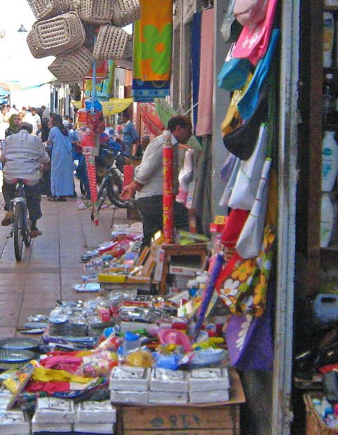 later, into an alleyway of destitute Moroccans selling flea market