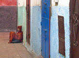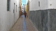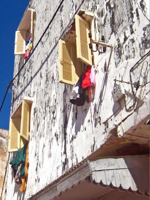 Medina area in run down peeling concrete homes. |