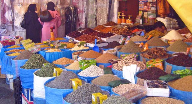 trade of spices, cheap shoes, carpets, crafts, woodworks, textiles and