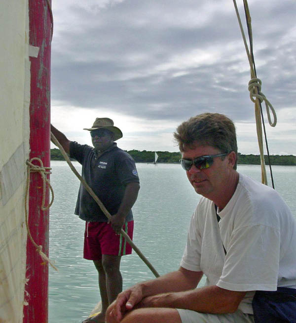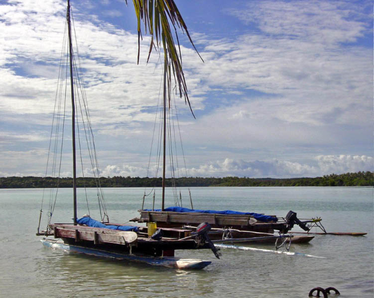 | The lagoon was glassy calm with just enough breeze to move us slowly along through the shallow waters of Upi Bay, sprinkled with coral rocks which resemble gigantic mushrooms. | ||
