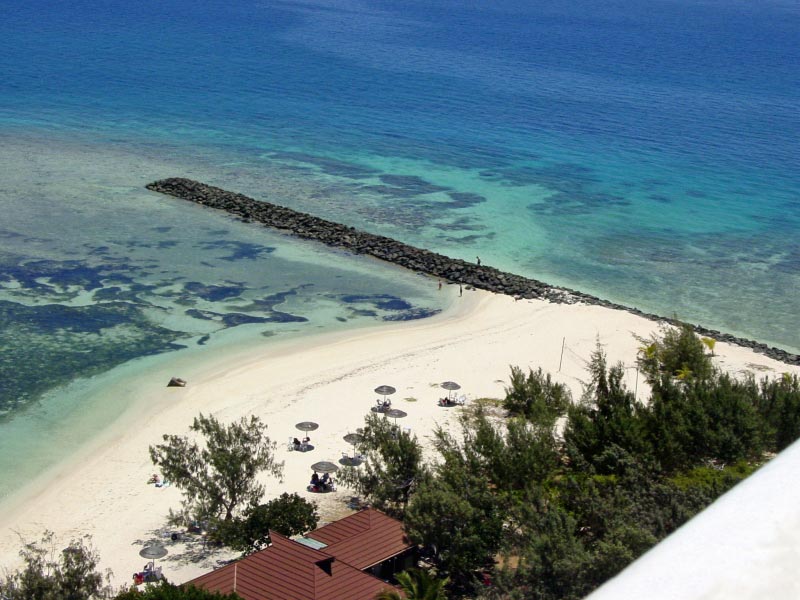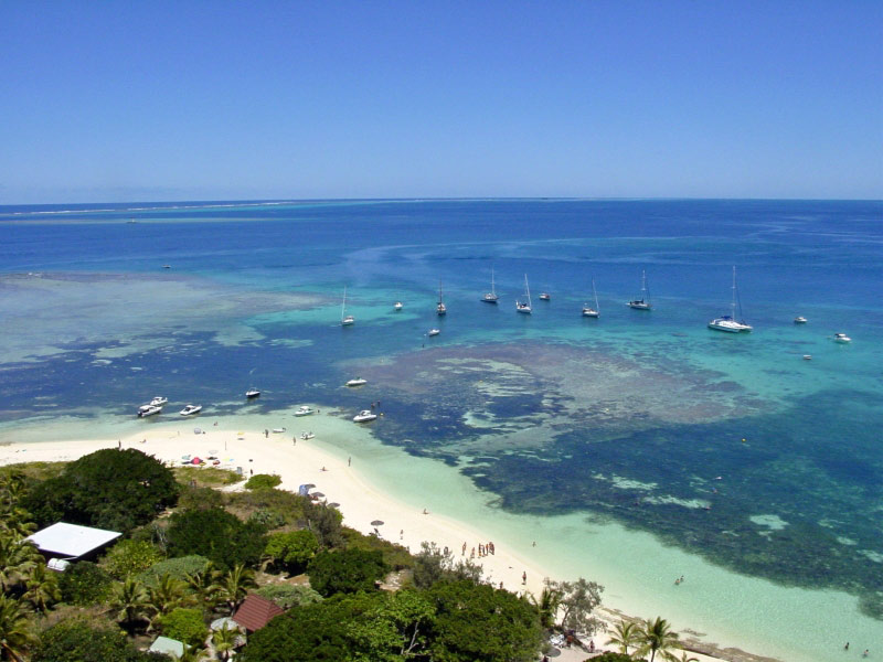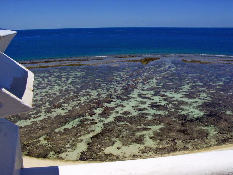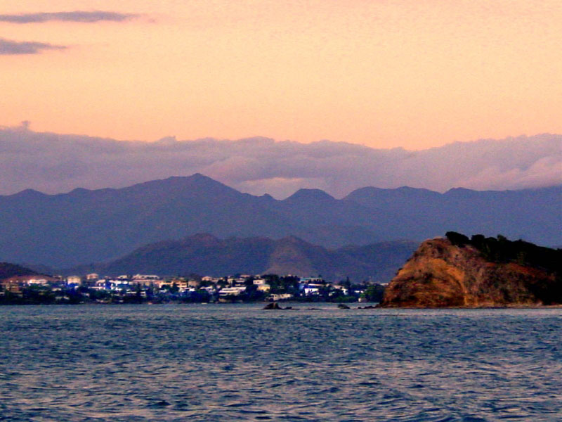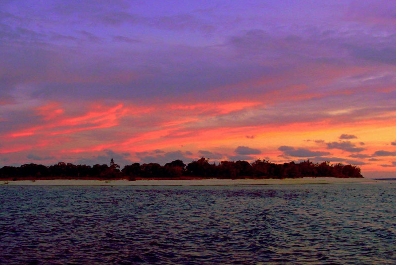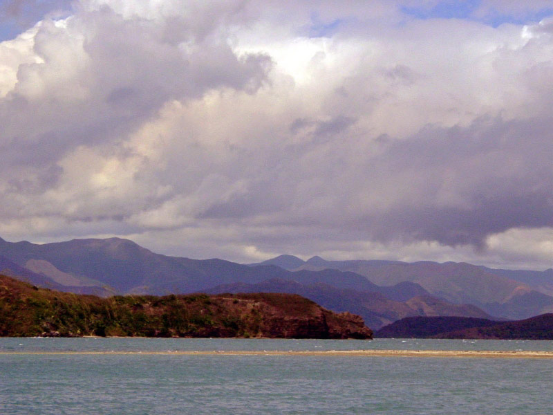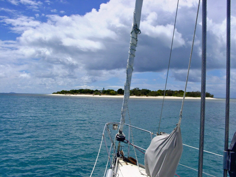Snorkeling in the Marine Park November 8, 2005 We went for a snorkel just before lunch and found many interesting bombies with great coral and fish just off the shore at Ilot Signal. Afterward we took the dinghy inside the lagoon and saw huge rays, shark, lots of turtles (some reddish color), snakes, and a gigantic turquoise fish. It was great to be somewhere where there was so much life in the sea! Back at the boat we wondered what the island we could see on the horizon would be like, so we pulled up the anchor and motored the 5 miles to Ilot M'bo. But when we arrived at the pretty little isolated island, the anchorage looked very exposed and rolly. We continued on to Ilot M'ba 2 miles north. The anchorage there wasn't a lot more protected but we spent the night there, bobbing up and down a fare amount. November 9, 2005 After breakfast we tried to go for a walk around Ilot M'ba on the beautiful white sand beach but the tide was down and there was no way we could get the dingy over the surrounding reef to shore. The water was very clear and the reef appeared to be in excellent condition. I wanted to snorkel but we decided to make a hasty departure as the wind was starting to clock to the north. We headed to the mainland where there was a more protected anchorage. |