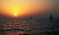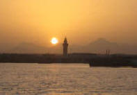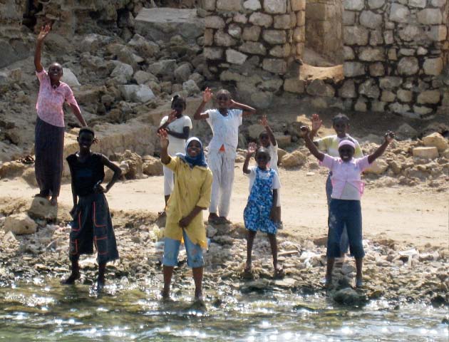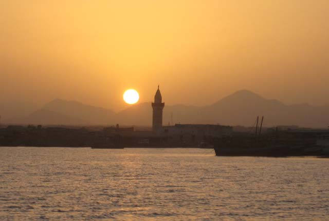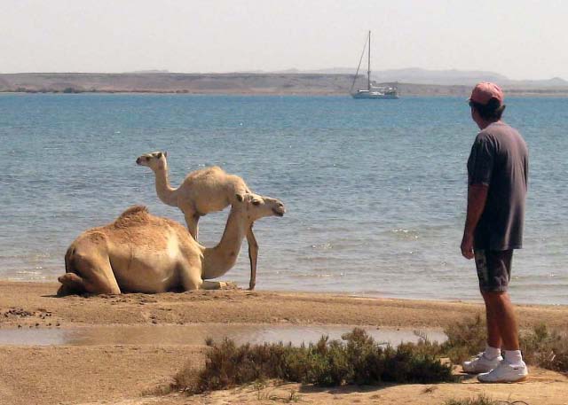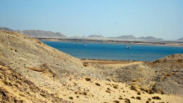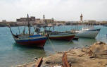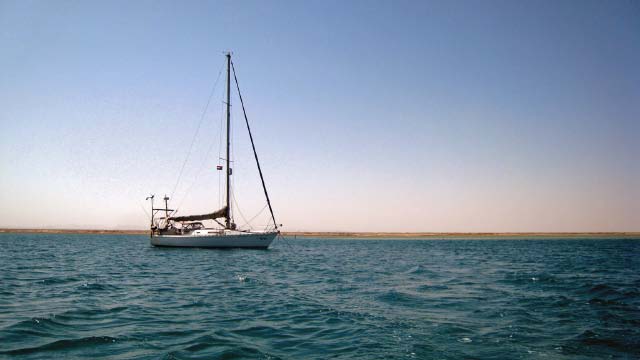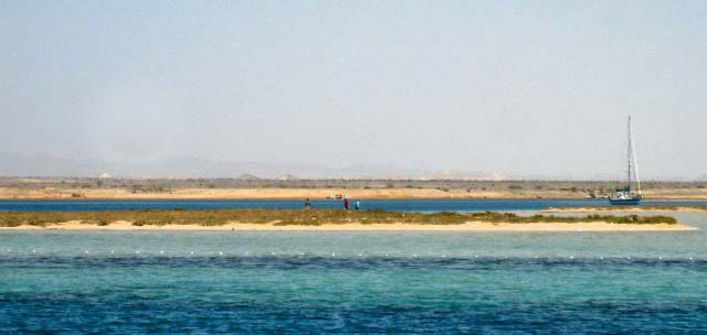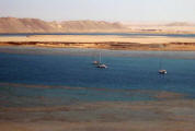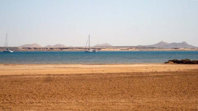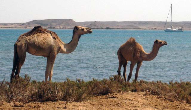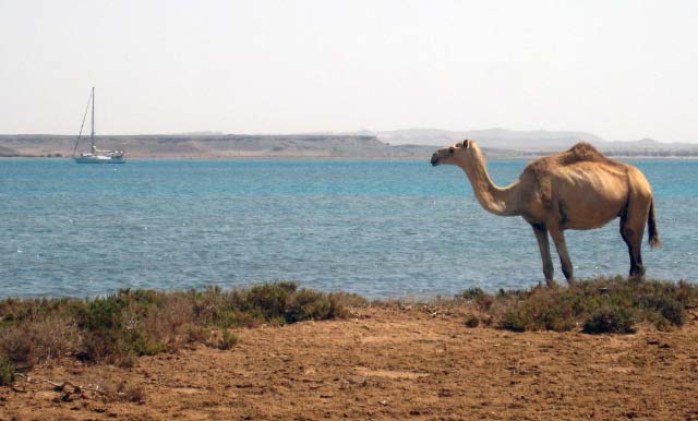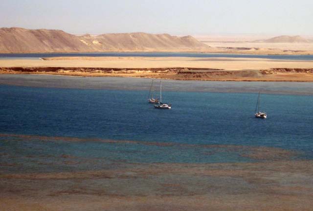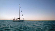 March 21 We sailed out of the lagoon in Suakin at 5 am as the rising sun was casting a yellow glow on the ruins, past pink flamingos wading in the nearby shallow water. We decided to only sail as far as Port Sudan because that would make our next destination the following day easier. We were concerned that we may have check in problems at Port Sudan but when we informed the officials that we would not be getting off the boat and leaving early the following day, there was no problem. Port Sudan was an industrial port with ships coming and going at all times of the day and night, sometimes getting too close for comfort as we were anchored quite close to the dock. |