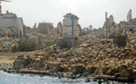 | We relaxed onboard reveling in the wondrous sight onshore. After the buildings of the city, built of coral blocks held together with a minimum amount of mortar and wooden beams, were abandoned, they quickly fell into disrepair. |