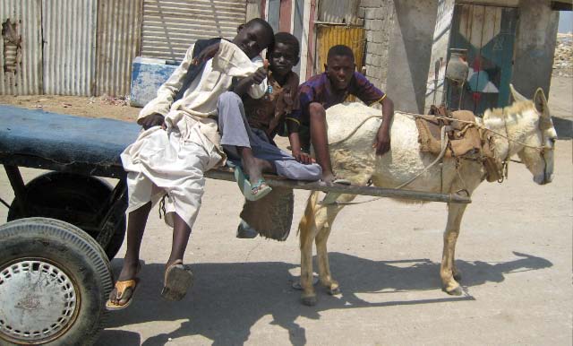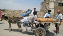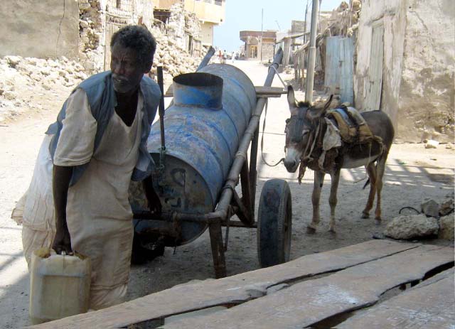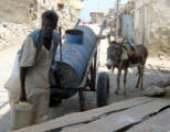 Water is transported by donkey cart |