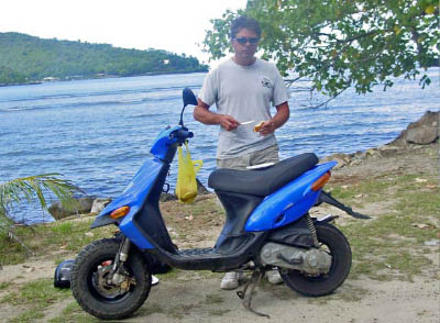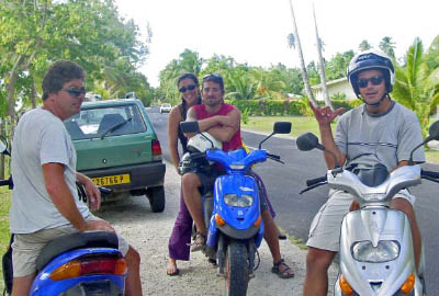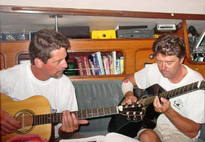 Just as we were finishing our island tour, we met up with Billabong, Island, Sonata and Waking Dream who had also rented scooters for the day. That evening, we got together with Solstice on Ascension and Gord and Doug jammed together for a while. |