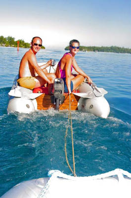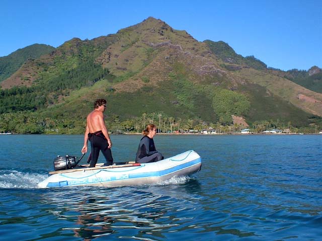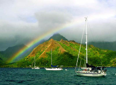 Since there was only a couple of days left on our visas, and we needed to get our bond money back, we had to leave this little paradise and move on. We had already been delayed a day because of a squall that came up and it was just too nasty out there. We had hoped to make a stop in Huahine on the way to Bora Bora. Turning Back Finally the next evening, we pulled anchor and headed out into the moonless night with Marv and Donna on Endless. Immediately we realized that the autopilot was not working. For 2 hours we tried to get the Windvane to steer the boat with no luck. The winds and seas were building more and more the further we got from land, so we made the decision to turn around and head back to the anchorage. It was hard finding our way through the reef in the dark but we managed, with the help of all our friends in the anchorage who guided us with radio and lights. Marv and Donna continued on, so we decided to meet up with them later in Huahine. |