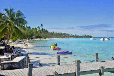 The road runs the perimeter of the island, where people live scattered along the shoreline. Not as much of the white sandy beach as I expected but we did find a few areas that weren't gobbled up by a hotel. And everywhere that magical palette of turquoise and blue that looked illuminated by underwater lights. We took advantage of the amenities of a 5 star resort and had a cold (and pricey) drink shore side. | |||