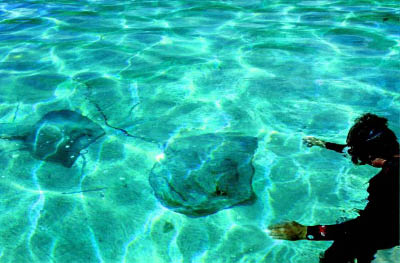 Swimming with the Sting Rays Although there was great snorkeling near the boat, we took the long dinghy ride to visit the area where you can swim with the stingrays. There was an area that the stingrays were so friendly (as a result of being fed by the hotel) that they would literally crawl all over you in waist deep water. |