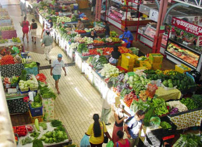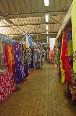 Papeete We took a dinghy ride to shore and walked around the streets. It felt like culture shock...the noise, pollution, just about getting run over by all the traffic! We came upon a large supermarket and marveled at the rows of fresh veggies (an overwhelming urge to buy everything in sight). You may find this hard to believe, but after shopping in the poorly stocked stores of the Marquesas and Tuamotus, we spent hours just admiring all the stuff that was available. Never did we think that fresh lettuce, tomatoes, and even pineapples would seem such a luxury. I'm sure our expressions must have looked pretty strange to the locals, like we had never been to the big city before, and that's just how it felt. |
