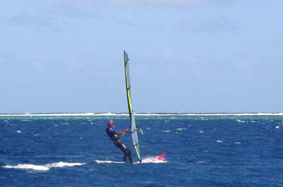 The Storm that will Never be Forgotten We returned to the boat to hear rumours of upcoming bad weather. We downloaded weather charts on email and studied them. After much discussion, the general consensus was that everyone let out more anchor chain, put on additional snubbers and prepare for the worst. Sure enough, 2:30 am all hell broke loose. Winds suddenly tore through the anchorage building to over 60 knots! That was winds blowing between 90-120 km (close to hurricane force). Everyone rushed up on deck in the black night, with rain pouring down and the wind howling so loud you could hardly hear the frantic calls on the radio from boats throughout the overcrowded anchorage. We could see shadowy silhouettes and anchor lights everywhere, some tacking by at an alarming speed as their holding broke loose and they dragged their anchors, sometimes narrowly missing boats, but unfortunately sometimes colliding with boats around them. We had our engine powered into our anchor to relieve the pressure and all we could think about was that we don't have insurance!!! Bordering the anchorage is a reef on one side and the shore on the other and everyone was praying that they wouldn't end up in either place. We saw the silhouette of our really good friends from Stardust flying backwards toward the shore at warp speed out of control. A boat called Sea Bride dragged into them, T-boning their boat and running over their anchor, pulling it out of the ground. Stardust lost their holding, out of control, hitting a French boat causing their dinghy to break loose, then continued right over the reef narrowly missing some pilings and ending up in only 8 feet of water. They were sure they were going to lose the boat (their had their survival gear on) when suddenly the anchor caught a big 55 gallon steel drum buried in the sand and the boat stopped. Sowelu right beside us, started to drag before ending up only a few feet in front of the reef, where his anchor luckily dug in and stopped him. Suddenly Sea Bride was calling a May Day! The boat had hit the reef and they were pleading for help. But everyone was much too busy to do anything. It is a helpless feeling when you can't offer any assistance. Luckily after about an hour, they managed to get off the reef and out into the middle of the channel to ride out the gale, their boat relatively undamaged. By mid morning the winds subsided to 25 knots and we felt like it was like a walk in the park (funny how your perspective changes). Now the radio was alive with reports of missing dinghies, motors, sail covers, kayaks and various boat parts. Everyone was assessing their damage, lots of punctured dinghies and broken stanchions. Stardust took the biggest hit. Their boat sustained a lot of damage and they don't have insurance either. The wind diminished for about an hour and everyone was trying to get some sleep after being up all night. But 30 knots squalls continued to pass through. We were all waiting for the back of the front to move through and everyone was setting additional anchors and reinforcing snubbers. The following day we were hit with gusts to 40 knots but everyone was much more prepared and there were no incidents. We were soon to learn that these strong southeast winds consistently march through the narrows formed by Tahiti and neighbouring Moorea and happen with such a regularity that they have been given a name - "Maraamu." Maraamus can pack a force well in excess of 25 knots and last 2 or 3 days. They seem to have a weekly cycle which soon made us all realize that Tahiti does not have very friendly weather patterns at all.
