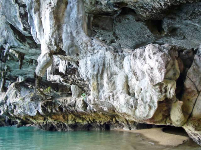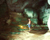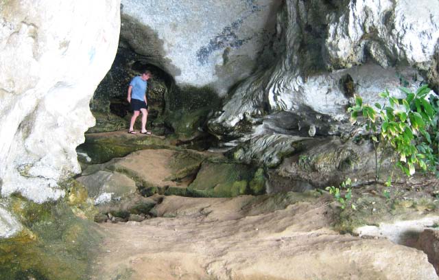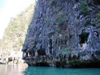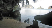 Caving Around the next bend on Ko Phanak we came upon another little sandy shore so beached the dinghy again. This indentation was actually the opening to a huge cave. The cave housed many caverns and we explored only one. |