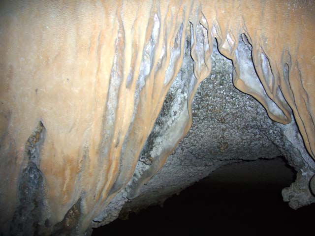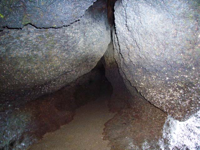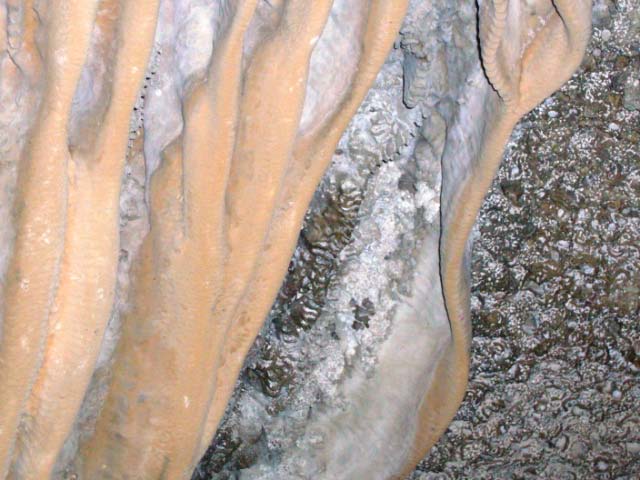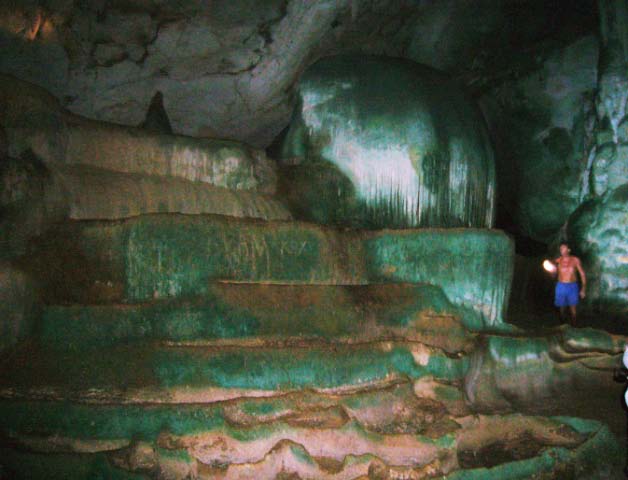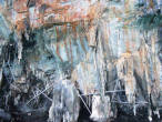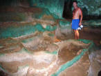 A Kaleidoscope of Colors We climbed around and over the crevices and cracks and came upon the amazing terrace of greeny blue rocks that look like a water fall. The colors seem supernatural and the sea-etched stone 'steps' appear man made. Behind the cascading formation was a passageway to another cavern. The peculiar patterns and structure of the rock gave an eerie sense of being in another world! |