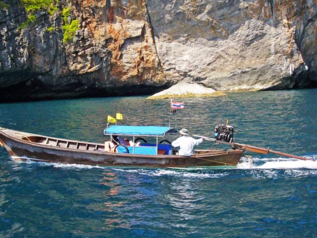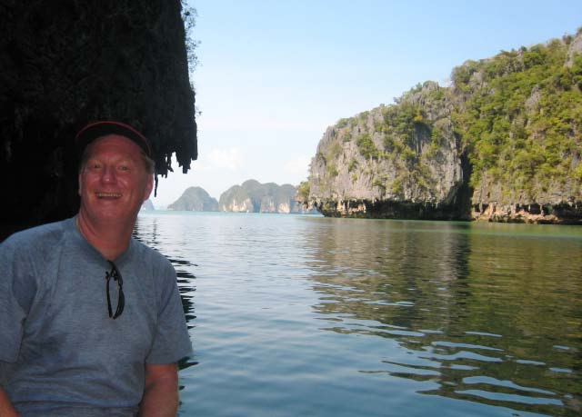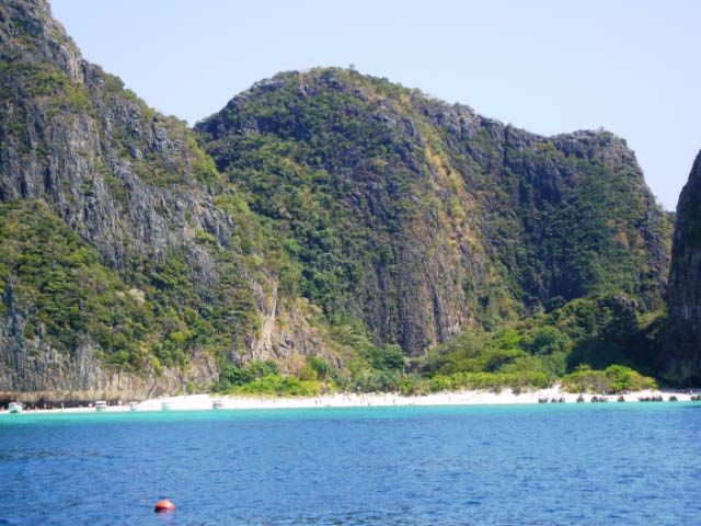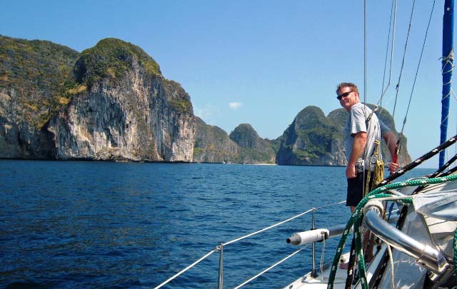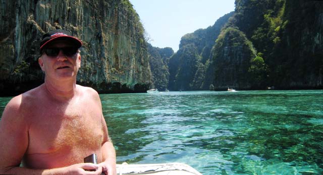 We were able to easily pick up a mooring ball despite the anchorage being crowded with the usual array of tour boats. Bruce was duly impressed by the beauty of Maya Bay with its high rock precipices dominating the shoreline. |