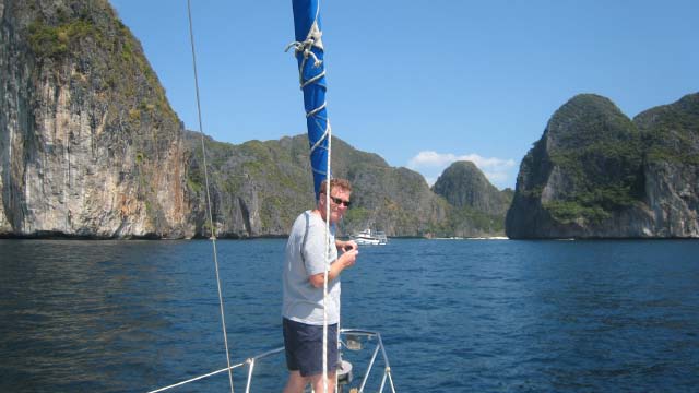 March 11 Since the wind was favorable we made the decision to sail to Phi Phi Group of Islands, about a 5 hour sail away. We had a good breeze most of the way, which was a nice relief from the hot weather. |