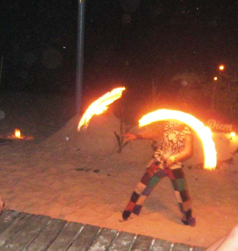Bar Hopping We walked along the beach surveying some of the action. The crowd at Phi Phi Don seemed to be a much younger group than the collection of tourists that were there at Christmas. We competed with very loud music and watched some of the fire dancing over drinks. |