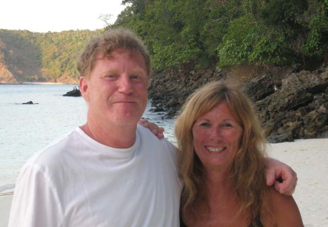 PATONG BEACH We met Bob, Becky and Tony at a restaurant in Kata Beach. Bruce was amazed that the old Reggae Bar at the end of the beach where he hung out 20 years ago was the same one that we favored during our stay at Kata. The bungalows that he stayed in had been replaced by the huge hotel that was the headquarters for the King's Cup! |