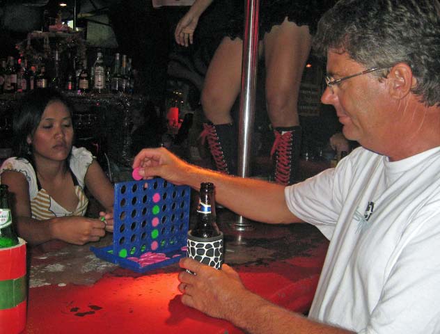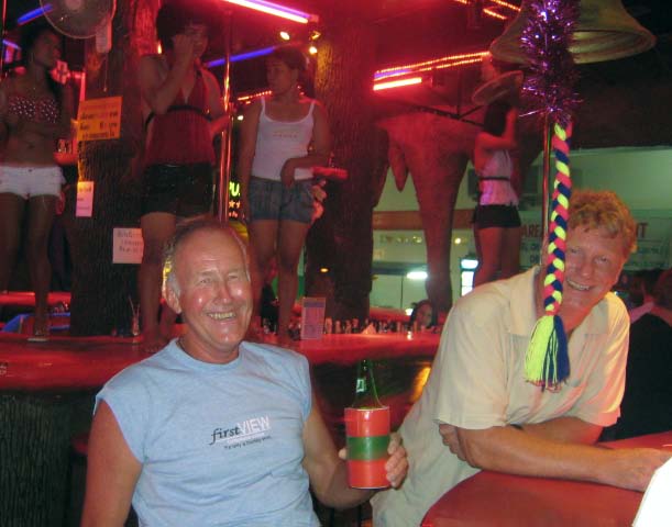 | After dinner Tony joined us for a trip to Patong to visit the Tiger Bar. We walked down Bangla Street, the various bars competing with each other by their loud music, promise for cheap beer, and beckoning girls. |