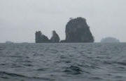 of rock reaching skyward 100 to 200 meters from the shallow