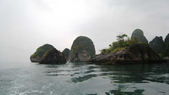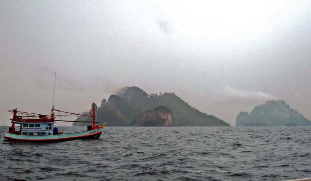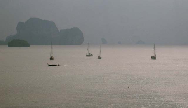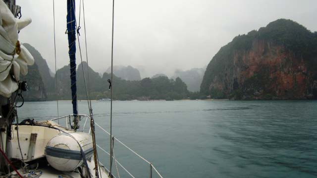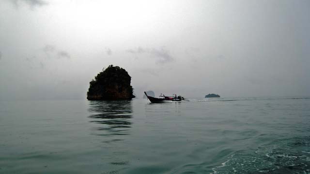 set sail across the steely gray waters to Krabi. Chris assumed a