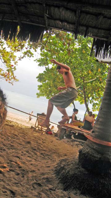 Finally we were beckoned to shore by a resort, hopeful of a drink.