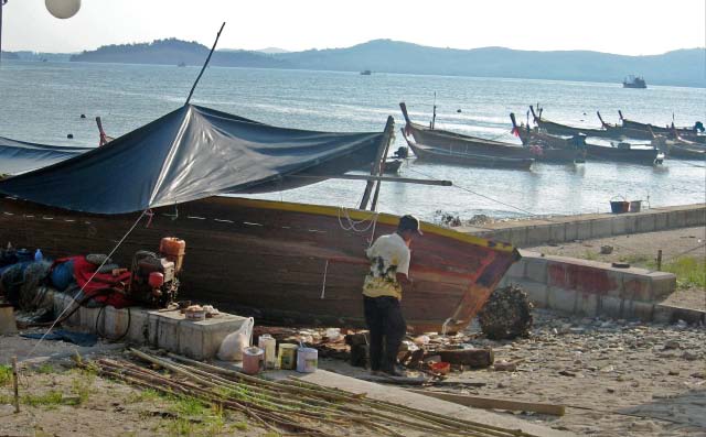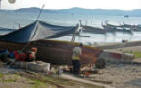 The people of the village still maintain their subsistence from the sea. The beach was lined with fishing boats, some being built, and fish traps. |