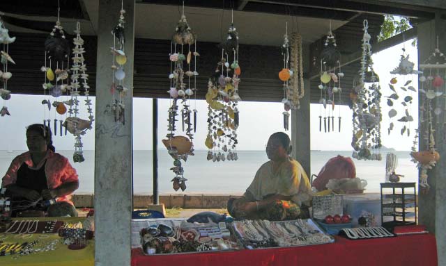 Street vendors had stalls set up to sell their shells. |