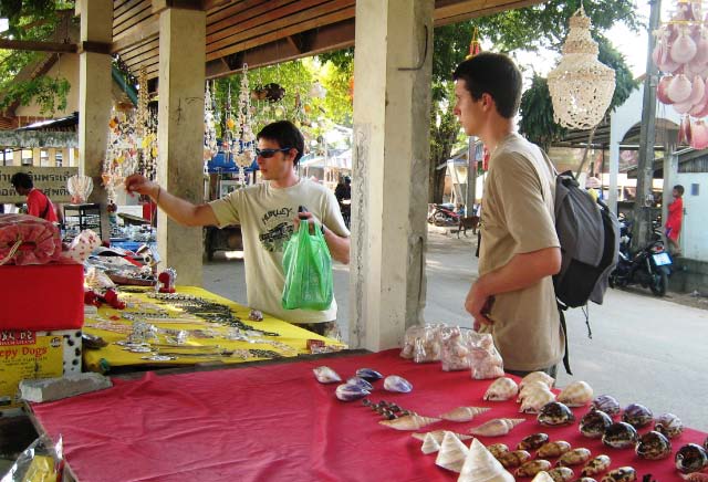 Phuket Town We took the local bus to Phuket Town, where we did some quick shopping. We visited the open market with its array of clothing and shoes and the boys bought luggage to transport all their new acquisitions home. Phuket Town is a busy community, far removed from tourism. Most of the streets are lined with Chinese style shophouses, three stories high, the ground floor being stores and the upper floors are living quarters. |