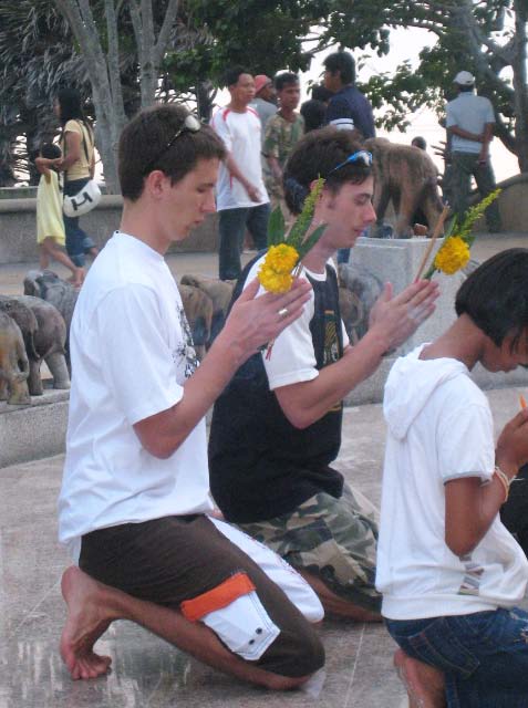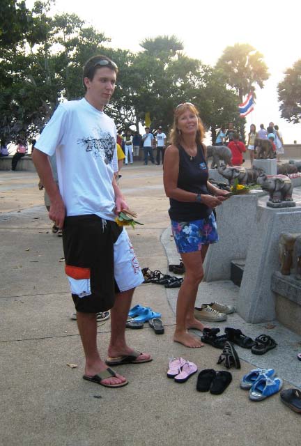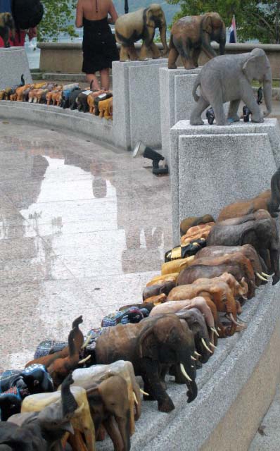 Homage to the Elephant At the landing there was a Buddhist Shrine complete with hundreds, if not thousands of elephants, all sizes, decorated in some very unique ways. Many people were gathered to pay homage to the elephant. |