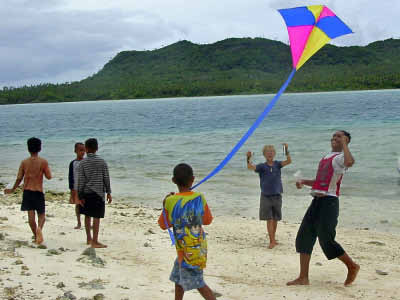 Some cruisers with kids of their own brought kites for all the children... however the Tonga children were made to stop flying them because they are not allowed to play on Sunday.