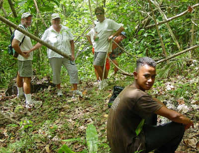 | It was time to head back to the boat so we bade Simon farewell giving him presents of fish hooks, T shirt and rice for his wonderful tour. | ||