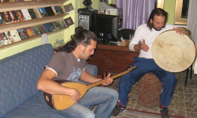 A visit to a music shop ...and the boys dropping what they were doing to entertain us playing their Turkish instruments. |