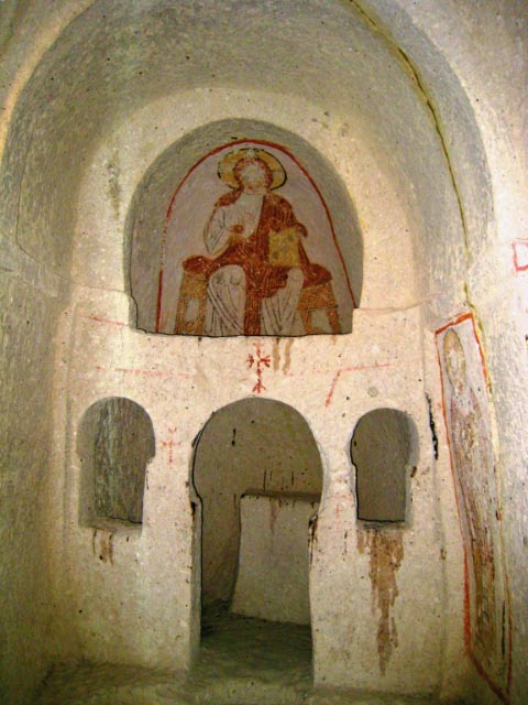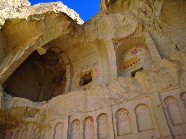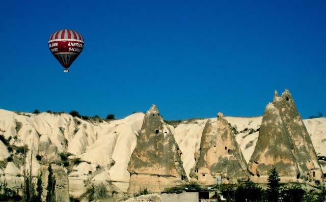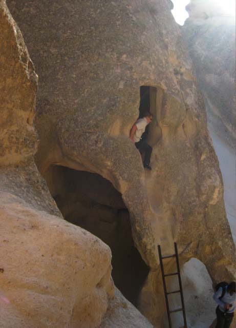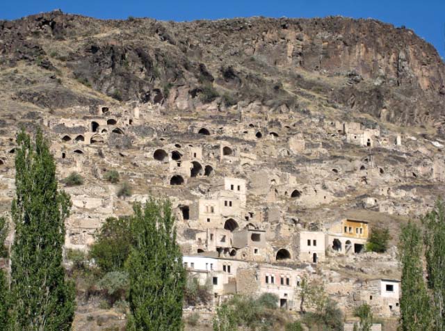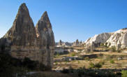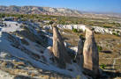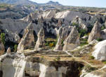 At Pasabag, near Zelvie, we stopped and wandered through an extensive and wondersome outcrop of spiralling dome-capped fairy chimneys. Spread over 3 valleys, Zelvie was inhabited until 1952. Now souvenir shops take advantage of the visiting tourists. | |||