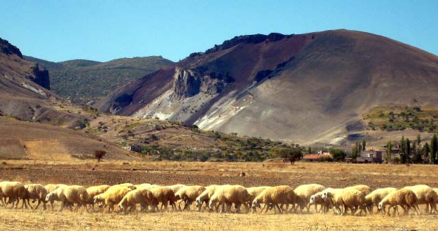 Ihlara Our journey continued south passing workers digging in potato fields and where we would sometimes need to stop for a herd of sheep or goats crossing the road. |