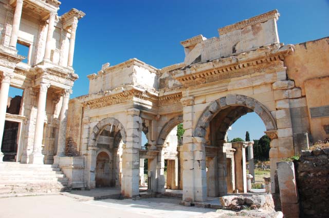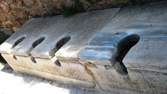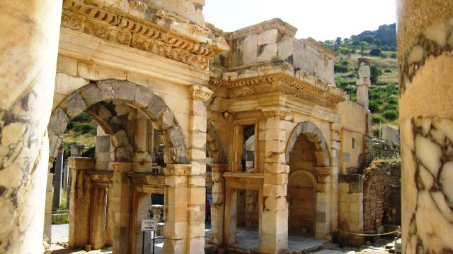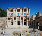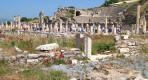 The Latrina built in the first century A.D. are the public toilets of Ephesus. The toilets were ranged side by side with no partition between them. In the middle was a square pool. The floor was paved with mosaics. |