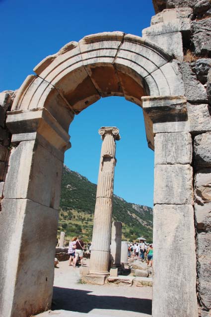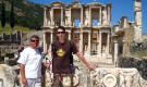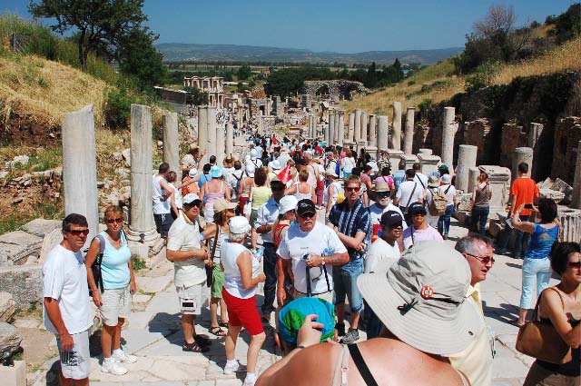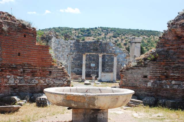 Late morning the buses from the cruise ships dumped 1000's of tourists and they plummeted on us like a wave on Curetes Street, the street that stretches from the Heracles Gate to the Celcus Library. Time to go! | We headed away from the main site of Efes, down an old road, past more ruin to the ancient baths and church. |