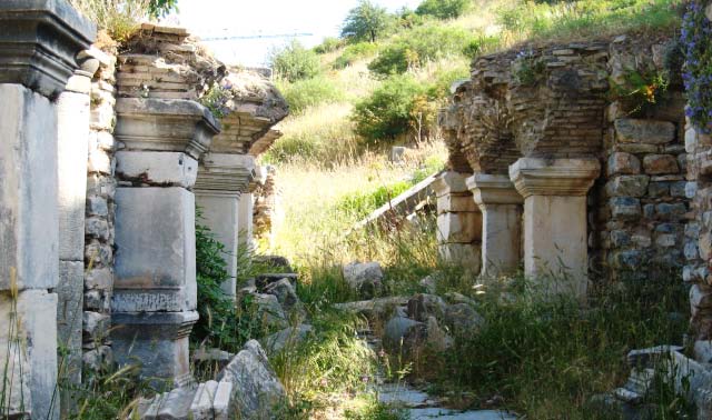 Workers tend the fields amidst the Ionic and Corinthian columns that was once part of the majestic 1000 year old city of Ephesus. | Church of the Virgin Mary The first Christian church ever built for Virgin Mary. Also the first Christian Council meeting about the role of Virgin Mary in Christianity was held in this building in 431 A.D. |